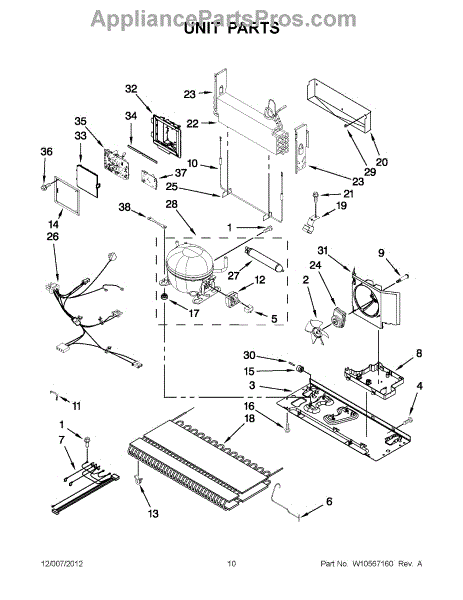 The Drip Pan is an OEM part for Whirlpool refrigerators. Located beneath the refrigerator, it collects and holds water that drips from the defrost system, preventing it from leaking onto the floor.