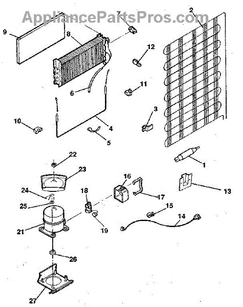 This is a compressor used in several types of home appliances. The compressor is designed to take cold gas in the appliance and place it under pressure so the gas raises in temperature. It is then moved through the refrigerator system to ensure the unit stays cold throughout the appliance. This part can become damaged or malfunction, which may cause the motor to stop running, make the motor noisier, or cause the motor to never stop running.If this happens, the compressor will need to be replaced. A basic set of tools will be needed. A pair of work gloves can also be useful. First, locate the compressor as it may be in various locations depending on the appliance model. Unplug the appliance before removing the compressor. Install the new compressor using the original bolts and nuts before turning the power back on and resuming normal use.This part is sold on an individual basis. The compressor is made to be used with refrigerators, ranges, stoves, ovens, air conditioners, and freezers created by Gibson, Frigidaire, Kelvinator, Montgomery Wards, Westinghouse, Tappan, JCPenney, Universal, and Kenmore. It is an authentic OEM replacement part directly sourced from the manufacturer.