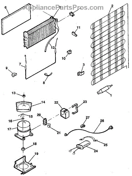 This is a compressor used in several types of home appliances. The compressor is designed to take cold gas in the appliance and place it under pressure so the gas raises in temperature. It is then moved through the refrigerator system to ensure the unit stays cold throughout the appliance. This part can become damaged or malfunction, which may cause the motor to stop running, make the motor noisier, or cause the motor to never stop running.If this happens, the compressor will need to be replaced. A basic set of tools will be needed. A pair of work gloves can also be useful. First, locate the compressor as it may be in various locations depending on the appliance model. Unplug the appliance before removing the compressor. Install the new compressor using the original bolts and nuts before turning the power back on and resuming normal use.This part is sold on an individual basis. The compressor is made to be used with refrigerators, ranges, stoves, ovens, air conditioners, and freezers created by Gibson, Frigidaire, Kelvinator, Montgomery Wards, Westinghouse, Tappan, JCPenney, Universal, and Kenmore. It is an authentic OEM replacement part directly sourced from the manufacturer.