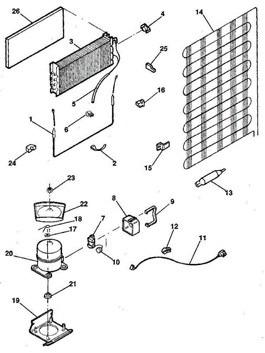 This is a compressor used in several types of home appliances. The compressor is designed to take cold gas in the appliance and place it under pressure so the gas raises in temperature. It is then moved through the refrigerator system to ensure the unit stays cold throughout the appliance. This part can become damaged or malfunction, which may cause the motor to stop running, make the motor noisier, or cause the motor to never stop running.If this happens, the compressor will need to be replaced. A basic set of tools will be needed. A pair of work gloves can also be useful. First, locate the compressor as it may be in various locations depending on the appliance model. Unplug the appliance before removing the compressor. Install the new compressor using the original bolts and nuts before turning the power back on and resuming normal use.This part is sold on an individual basis. The compressor is made to be used with refrigerators, ranges, stoves, ovens, air conditioners, and freezers created by Gibson, Frigidaire, Kelvinator, Montgomery Wards, Westinghouse, Tappan, JCPenney, Universal, and Kenmore. It is an authentic OEM replacement part directly sourced from the manufacturer.