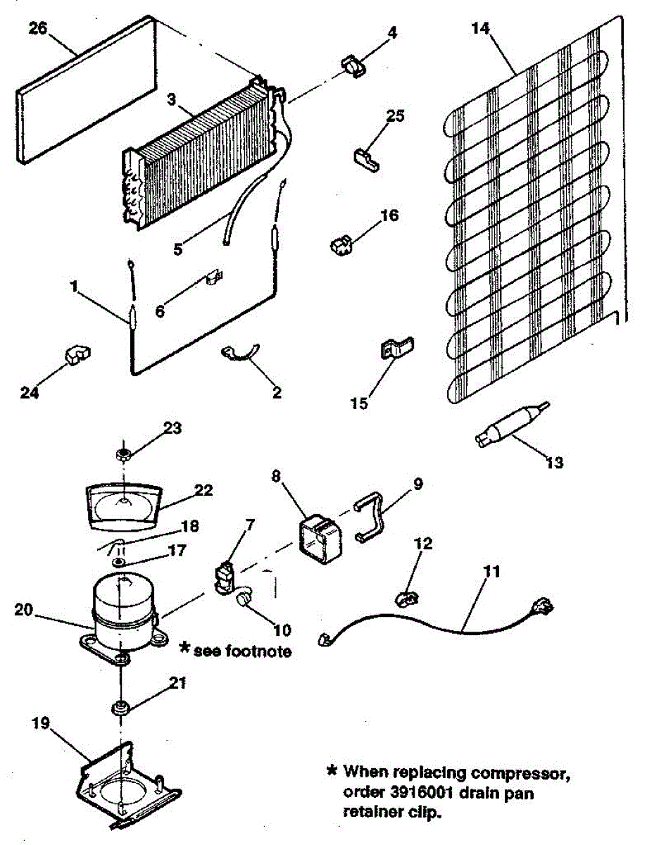 This is a compressor used in several types of home appliances. The compressor is designed to take cold gas in the appliance and place it under pressure so the gas raises in temperature. It is then moved through the refrigerator system to ensure the unit stays cold throughout the appliance. This part can become damaged or malfunction, which may cause the motor to stop running, make the motor noisier, or cause the motor to never stop running.If this happens, the compressor will need to be replaced. A basic set of tools will be needed. A pair of work gloves can also be useful. First, locate the compressor as it may be in various locations depending on the appliance model. Unplug the appliance before removing the compressor. Install the new compressor using the original bolts and nuts before turning the power back on and resuming normal use.This part is sold on an individual basis. The compressor is made to be used with refrigerators, ranges, stoves, ovens, air conditioners, and freezers created by Gibson, Frigidaire, Kelvinator, Montgomery Wards, Westinghouse, Tappan, JCPenney, Universal, and Kenmore. It is an authentic OEM replacement part directly sourced from the manufacturer.
