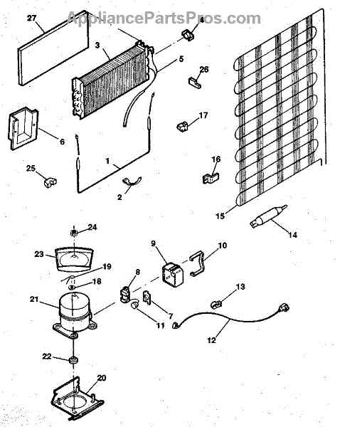 This is a compressor used in several types of home appliances. The compressor is designed to take cold gas in the appliance and place it under pressure so the gas raises in temperature. It is then moved through the refrigerator system to ensure the unit stays cold throughout the appliance. This part can become damaged or malfunction, which may cause the motor to stop running, make the motor noisier, or cause the motor to never stop running.If this happens, the compressor will need to be replaced. A basic set of tools will be needed. A pair of work gloves can also be useful. First, locate the compressor as it may be in various locations depending on the appliance model. Unplug the appliance before removing the compressor. Install the new compressor using the original bolts and nuts before turning the power back on and resuming normal use.This part is sold on an individual basis. The compressor is made to be used with refrigerators, ranges, stoves, ovens, air conditioners, and freezers created by Gibson, Frigidaire, Kelvinator, Montgomery Wards, Westinghouse, Tappan, JCPenney, Universal, and Kenmore. It is an authentic OEM replacement part directly sourced from the manufacturer.