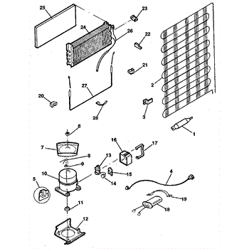 This is a compressor used in several types of home appliances. The compressor is designed to take cold gas in the appliance and place it under pressure so the gas raises in temperature. It is then moved through the refrigerator system to ensure the unit stays cold throughout the appliance. This part can become damaged or malfunction, which may cause the motor to stop running, make the motor noisier, or cause the motor to never stop running.If this happens, the compressor will need to be replaced. A basic set of tools will be needed. A pair of work gloves can also be useful. First, locate the compressor as it may be in various locations depending on the appliance model. Unplug the appliance before removing the compressor. Install the new compressor using the original bolts and nuts before turning the power back on and resuming normal use.This part is sold on an individual basis. The compressor is made to be used with refrigerators, ranges, stoves, ovens, air conditioners, and freezers created by Gibson, Frigidaire, Kelvinator, Montgomery Wards, Westinghouse, Tappan, JCPenney, Universal, and Kenmore. It is an authentic OEM replacement part directly sourced from the manufacturer.