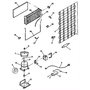 This is a compressor used in several types of home appliances. The compressor is designed to take cold gas in the appliance and place it under pressure so the gas raises in temperature. It is then moved through the refrigerator system to ensure the unit stays cold throughout the appliance. This part can become damaged or malfunction, which may cause the motor to stop running, make the motor noisier, or cause the motor to never stop running.If this happens, the compressor will need to be replaced. A basic set of tools will be needed. A pair of work gloves can also be useful. First, locate the compressor as it may be in various locations depending on the appliance model. Unplug the appliance before removing the compressor. Install the new compressor using the original bolts and nuts before turning the power back on and resuming normal use.This part is sold on an individual basis. The compressor is made to be used with refrigerators, ranges, stoves, ovens, air conditioners, and freezers created by Gibson, Frigidaire, Kelvinator, Montgomery Wards, Westinghouse, Tappan, JCPenney, Universal, and Kenmore. It is an authentic OEM replacement part directly sourced from the manufacturer.