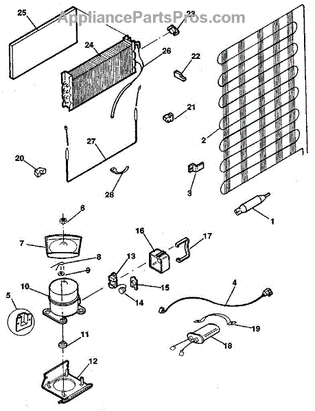 This is a compressor used in several types of home appliances. The compressor is designed to take cold gas in the appliance and place it under pressure so the gas raises in temperature. It is then moved through the refrigerator system to ensure the unit stays cold throughout the appliance. This part can become damaged or malfunction, which may cause the motor to stop running, make the motor noisier, or cause the motor to never stop running.If this happens, the compressor will need to be replaced. A basic set of tools will be needed. A pair of work gloves can also be useful. First, locate the compressor as it may be in various locations depending on the appliance model. Unplug the appliance before removing the compressor. Install the new compressor using the original bolts and nuts before turning the power back on and resuming normal use.This part is sold on an individual basis. The compressor is made to be used with refrigerators, ranges, stoves, ovens, air conditioners, and freezers created by Gibson, Frigidaire, Kelvinator, Montgomery Wards, Westinghouse, Tappan, JCPenney, Universal, and Kenmore. It is an authentic OEM replacement part directly sourced from the manufacturer.