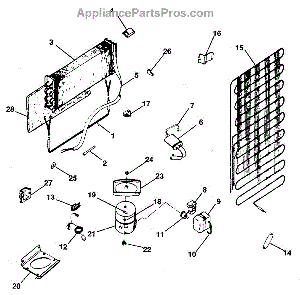 This is a compressor used in several types of home appliances. The compressor is designed to take cold gas in the appliance and place it under pressure so the gas raises in temperature. It is then moved through the refrigerator system to ensure the unit stays cold throughout the appliance. This part can become damaged or malfunction, which may cause the motor to stop running, make the motor noisier, or cause the motor to never stop running.If this happens, the compressor will need to be replaced. A basic set of tools will be needed. A pair of work gloves can also be useful. First, locate the compressor as it may be in various locations depending on the appliance model. Unplug the appliance before removing the compressor. Install the new compressor using the original bolts and nuts before turning the power back on and resuming normal use.This part is sold on an individual basis. The compressor is made to be used with refrigerators, ranges, stoves, ovens, air conditioners, and freezers created by Gibson, Frigidaire, Kelvinator, Montgomery Wards, Westinghouse, Tappan, JCPenney, Universal, and Kenmore. It is an authentic OEM replacement part directly sourced from the manufacturer.