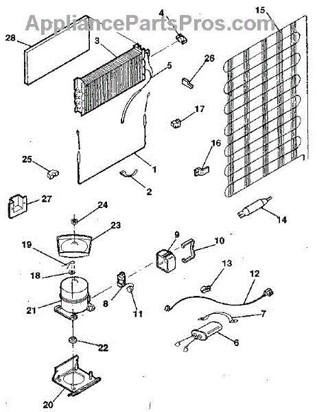 This is a compressor used in several types of home appliances. The compressor is designed to take cold gas in the appliance and place it under pressure so the gas raises in temperature. It is then moved through the refrigerator system to ensure the unit stays cold throughout the appliance. This part can become damaged or malfunction, which may cause the motor to stop running, make the motor noisier, or cause the motor to never stop running.If this happens, the compressor will need to be replaced. A basic set of tools will be needed. A pair of work gloves can also be useful. First, locate the compressor as it may be in various locations depending on the appliance model. Unplug the appliance before removing the compressor. Install the new compressor using the original bolts and nuts before turning the power back on and resuming normal use.This part is sold on an individual basis. The compressor is made to be used with refrigerators, ranges, stoves, ovens, air conditioners, and freezers created by Gibson, Frigidaire, Kelvinator, Montgomery Wards, Westinghouse, Tappan, JCPenney, Universal, and Kenmore. It is an authentic OEM replacement part directly sourced from the manufacturer.