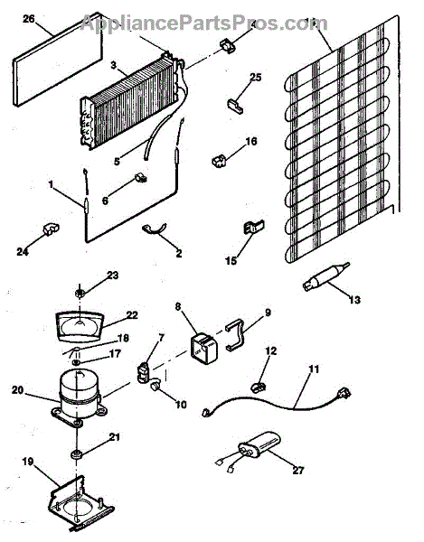 This is a compressor used in several types of home appliances. The compressor is designed to take cold gas in the appliance and place it under pressure so the gas raises in temperature. It is then moved through the refrigerator system to ensure the unit stays cold throughout the appliance. This part can become damaged or malfunction, which may cause the motor to stop running, make the motor noisier, or cause the motor to never stop running.If this happens, the compressor will need to be replaced. A basic set of tools will be needed. A pair of work gloves can also be useful. First, locate the compressor as it may be in various locations depending on the appliance model. Unplug the appliance before removing the compressor. Install the new compressor using the original bolts and nuts before turning the power back on and resuming normal use.This part is sold on an individual basis. The compressor is made to be used with refrigerators, ranges, stoves, ovens, air conditioners, and freezers created by Gibson, Frigidaire, Kelvinator, Montgomery Wards, Westinghouse, Tappan, JCPenney, Universal, and Kenmore. It is an authentic OEM replacement part directly sourced from the manufacturer.