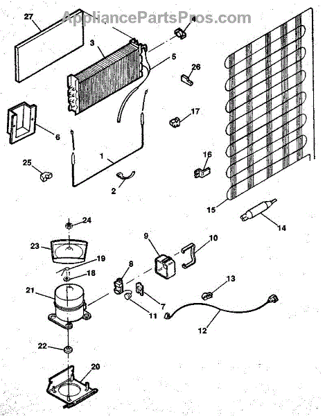 This is a compressor used in several types of home appliances. The compressor is designed to take cold gas in the appliance and place it under pressure so the gas raises in temperature. It is then moved through the refrigerator system to ensure the unit stays cold throughout the appliance. This part can become damaged or malfunction, which may cause the motor to stop running, make the motor noisier, or cause the motor to never stop running.If this happens, the compressor will need to be replaced. A basic set of tools will be needed. A pair of work gloves can also be useful. First, locate the compressor as it may be in various locations depending on the appliance model. Unplug the appliance before removing the compressor. Install the new compressor using the original bolts and nuts before turning the power back on and resuming normal use.This part is sold on an individual basis. The compressor is made to be used with refrigerators, ranges, stoves, ovens, air conditioners, and freezers created by Gibson, Frigidaire, Kelvinator, Montgomery Wards, Westinghouse, Tappan, JCPenney, Universal, and Kenmore. It is an authentic OEM replacement part directly sourced from the manufacturer.