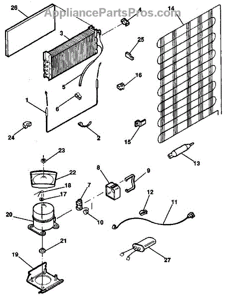 This is a compressor used in several types of home appliances. The compressor is designed to take cold gas in the appliance and place it under pressure so the gas raises in temperature. It is then moved through the refrigerator system to ensure the unit stays cold throughout the appliance. This part can become damaged or malfunction, which may cause the motor to stop running, make the motor noisier, or cause the motor to never stop running.If this happens, the compressor will need to be replaced. A basic set of tools will be needed. A pair of work gloves can also be useful. First, locate the compressor as it may be in various locations depending on the appliance model. Unplug the appliance before removing the compressor. Install the new compressor using the original bolts and nuts before turning the power back on and resuming normal use.This part is sold on an individual basis. The compressor is made to be used with refrigerators, ranges, stoves, ovens, air conditioners, and freezers created by Gibson, Frigidaire, Kelvinator, Montgomery Wards, Westinghouse, Tappan, JCPenney, Universal, and Kenmore. It is an authentic OEM replacement part directly sourced from the manufacturer.