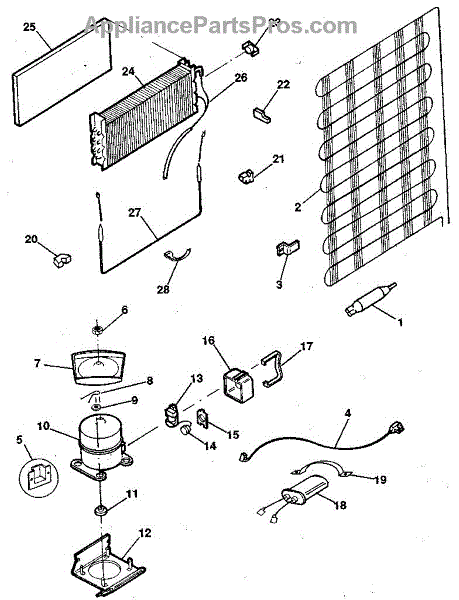 This is a compressor used in several types of home appliances. The compressor is designed to take cold gas in the appliance and place it under pressure so the gas raises in temperature. It is then moved through the refrigerator system to ensure the unit stays cold throughout the appliance. This part can become damaged or malfunction, which may cause the motor to stop running, make the motor noisier, or cause the motor to never stop running.If this happens, the compressor will need to be replaced. A basic set of tools will be needed. A pair of work gloves can also be useful. First, locate the compressor as it may be in various locations depending on the appliance model. Unplug the appliance before removing the compressor. Install the new compressor using the original bolts and nuts before turning the power back on and resuming normal use.This part is sold on an individual basis. The compressor is made to be used with refrigerators, ranges, stoves, ovens, air conditioners, and freezers created by Gibson, Frigidaire, Kelvinator, Montgomery Wards, Westinghouse, Tappan, JCPenney, Universal, and Kenmore. It is an authentic OEM replacement part directly sourced from the manufacturer.