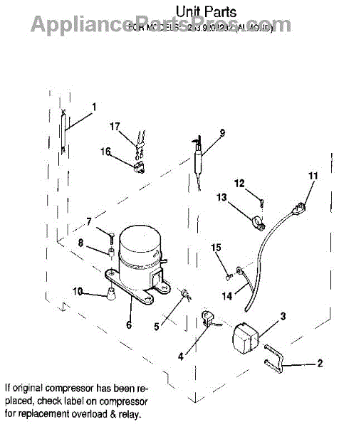 This is a compressor used in several types of home appliances. The compressor is designed to take cold gas in the appliance and place it under pressure so the gas raises in temperature. It is then moved through the refrigerator system to ensure the unit stays cold throughout the appliance. This part can become damaged or malfunction, which may cause the motor to stop running, make the motor noisier, or cause the motor to never stop running.If this happens, the compressor will need to be replaced. A basic set of tools will be needed. A pair of work gloves can also be useful. First, locate the compressor as it may be in various locations depending on the appliance model. Unplug the appliance before removing the compressor. Install the new compressor using the original bolts and nuts before turning the power back on and resuming normal use.This part is sold on an individual basis. The compressor is made to be used with refrigerators, ranges, stoves, ovens, air conditioners, and freezers created by Gibson, Frigidaire, Kelvinator, Montgomery Wards, Westinghouse, Tappan, JCPenney, Universal, and Kenmore. It is an authentic OEM replacement part directly sourced from the manufacturer.