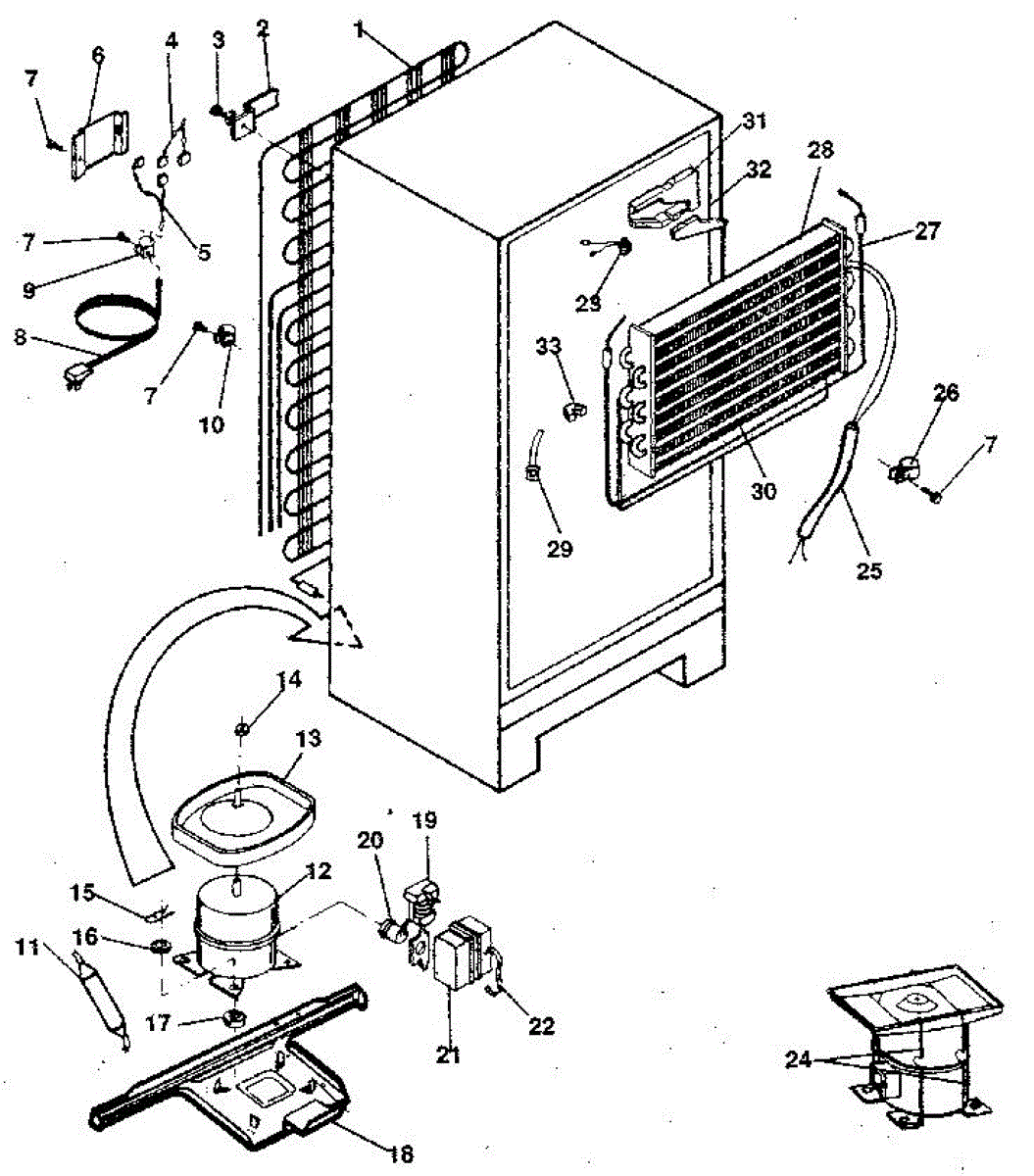 This is a compressor used in several types of home appliances. The compressor is designed to take cold gas in the appliance and place it under pressure so the gas raises in temperature. It is then moved through the refrigerator system to ensure the unit stays cold throughout the appliance. This part can become damaged or malfunction, which may cause the motor to stop running, make the motor noisier, or cause the motor to never stop running.If this happens, the compressor will need to be replaced. A basic set of tools will be needed. A pair of work gloves can also be useful. First, locate the compressor as it may be in various locations depending on the appliance model. Unplug the appliance before removing the compressor. Install the new compressor using the original bolts and nuts before turning the power back on and resuming normal use.This part is sold on an individual basis. The compressor is made to be used with refrigerators, ranges, stoves, ovens, air conditioners, and freezers created by Gibson, Frigidaire, Kelvinator, Montgomery Wards, Westinghouse, Tappan, JCPenney, Universal, and Kenmore. It is an authentic OEM replacement part directly sourced from the manufacturer.