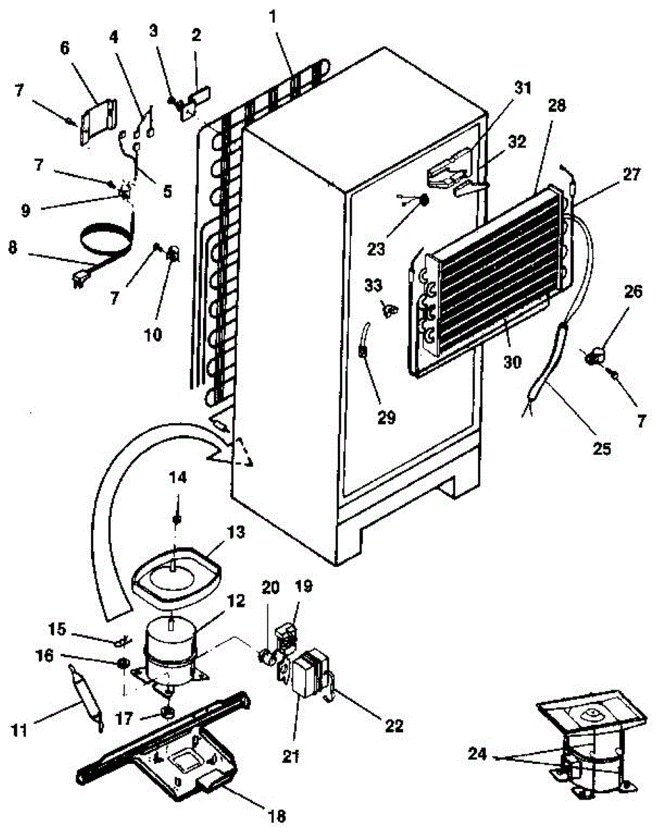 This is a compressor used in several types of home appliances. The compressor is designed to take cold gas in the appliance and place it under pressure so the gas raises in temperature. It is then moved through the refrigerator system to ensure the unit stays cold throughout the appliance. This part can become damaged or malfunction, which may cause the motor to stop running, make the motor noisier, or cause the motor to never stop running.If this happens, the compressor will need to be replaced. A basic set of tools will be needed. A pair of work gloves can also be useful. First, locate the compressor as it may be in various locations depending on the appliance model. Unplug the appliance before removing the compressor. Install the new compressor using the original bolts and nuts before turning the power back on and resuming normal use.This part is sold on an individual basis. The compressor is made to be used with refrigerators, ranges, stoves, ovens, air conditioners, and freezers created by Gibson, Frigidaire, Kelvinator, Montgomery Wards, Westinghouse, Tappan, JCPenney, Universal, and Kenmore. It is an authentic OEM replacement part directly sourced from the manufacturer.