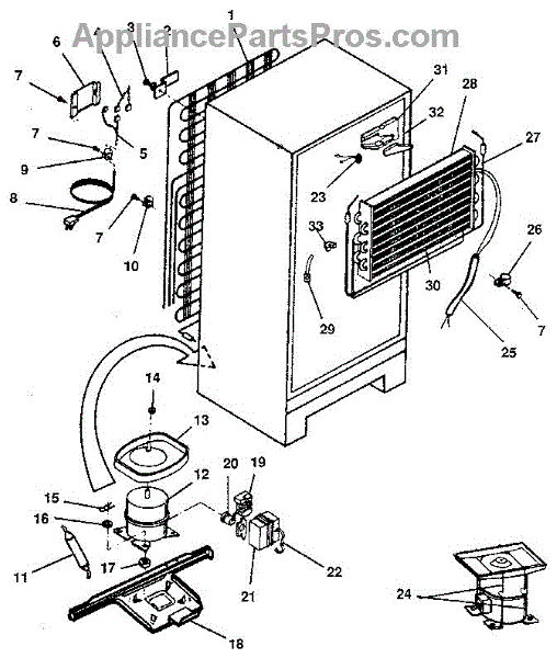 This is a compressor used in several types of home appliances. The compressor is designed to take cold gas in the appliance and place it under pressure so the gas raises in temperature. It is then moved through the refrigerator system to ensure the unit stays cold throughout the appliance. This part can become damaged or malfunction, which may cause the motor to stop running, make the motor noisier, or cause the motor to never stop running.If this happens, the compressor will need to be replaced. A basic set of tools will be needed. A pair of work gloves can also be useful. First, locate the compressor as it may be in various locations depending on the appliance model. Unplug the appliance before removing the compressor. Install the new compressor using the original bolts and nuts before turning the power back on and resuming normal use.This part is sold on an individual basis. The compressor is made to be used with refrigerators, ranges, stoves, ovens, air conditioners, and freezers created by Gibson, Frigidaire, Kelvinator, Montgomery Wards, Westinghouse, Tappan, JCPenney, Universal, and Kenmore. It is an authentic OEM replacement part directly sourced from the manufacturer.
