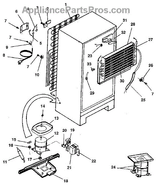 This is a compressor used in several types of home appliances. The compressor is designed to take cold gas in the appliance and place it under pressure so the gas raises in temperature. It is then moved through the refrigerator system to ensure the unit stays cold throughout the appliance. This part can become damaged or malfunction, which may cause the motor to stop running, make the motor noisier, or cause the motor to never stop running.If this happens, the compressor will need to be replaced. A basic set of tools will be needed. A pair of work gloves can also be useful. First, locate the compressor as it may be in various locations depending on the appliance model. Unplug the appliance before removing the compressor. Install the new compressor using the original bolts and nuts before turning the power back on and resuming normal use.This part is sold on an individual basis. The compressor is made to be used with refrigerators, ranges, stoves, ovens, air conditioners, and freezers created by Gibson, Frigidaire, Kelvinator, Montgomery Wards, Westinghouse, Tappan, JCPenney, Universal, and Kenmore. It is an authentic OEM replacement part directly sourced from the manufacturer.