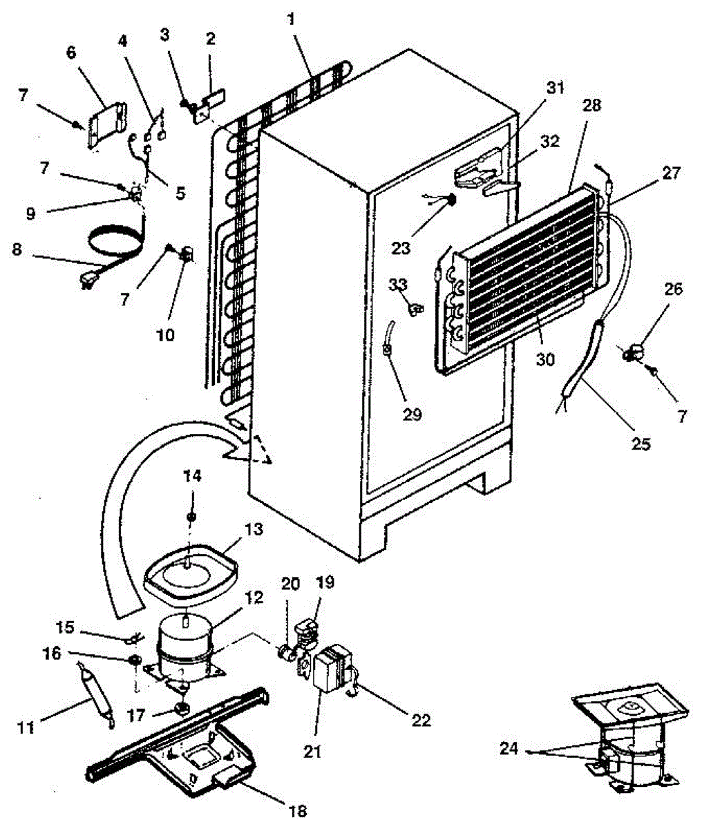 This is a compressor used in several types of home appliances. The compressor is designed to take cold gas in the appliance and place it under pressure so the gas raises in temperature. It is then moved through the refrigerator system to ensure the unit stays cold throughout the appliance. This part can become damaged or malfunction, which may cause the motor to stop running, make the motor noisier, or cause the motor to never stop running.If this happens, the compressor will need to be replaced. A basic set of tools will be needed. A pair of work gloves can also be useful. First, locate the compressor as it may be in various locations depending on the appliance model. Unplug the appliance before removing the compressor. Install the new compressor using the original bolts and nuts before turning the power back on and resuming normal use.This part is sold on an individual basis. The compressor is made to be used with refrigerators, ranges, stoves, ovens, air conditioners, and freezers created by Gibson, Frigidaire, Kelvinator, Montgomery Wards, Westinghouse, Tappan, JCPenney, Universal, and Kenmore. It is an authentic OEM replacement part directly sourced from the manufacturer.