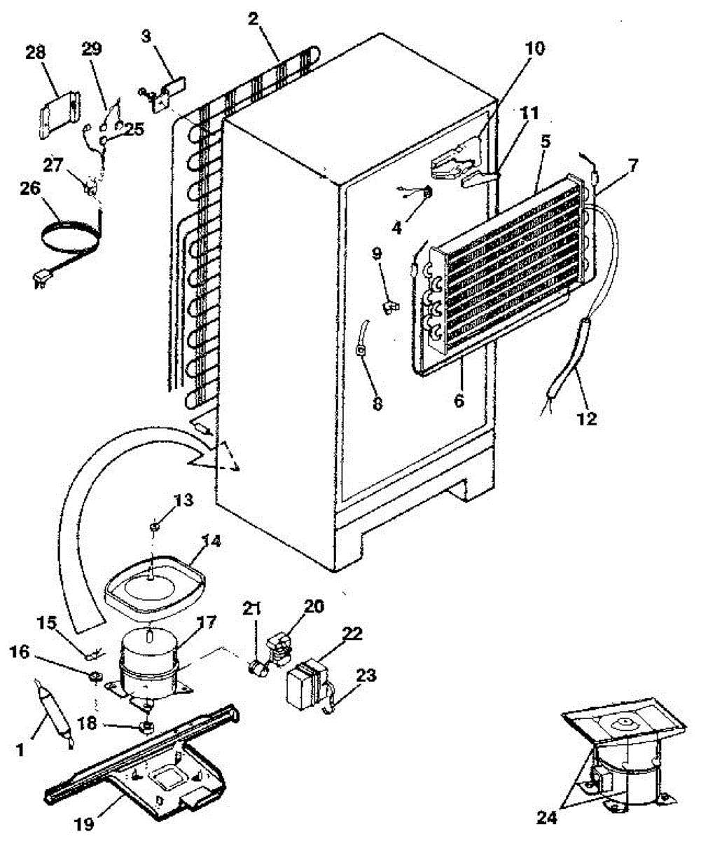 This is a compressor used in several types of home appliances. The compressor is designed to take cold gas in the appliance and place it under pressure so the gas raises in temperature. It is then moved through the refrigerator system to ensure the unit stays cold throughout the appliance. This part can become damaged or malfunction, which may cause the motor to stop running, make the motor noisier, or cause the motor to never stop running.If this happens, the compressor will need to be replaced. A basic set of tools will be needed. A pair of work gloves can also be useful. First, locate the compressor as it may be in various locations depending on the appliance model. Unplug the appliance before removing the compressor. Install the new compressor using the original bolts and nuts before turning the power back on and resuming normal use.This part is sold on an individual basis. The compressor is made to be used with refrigerators, ranges, stoves, ovens, air conditioners, and freezers created by Gibson, Frigidaire, Kelvinator, Montgomery Wards, Westinghouse, Tappan, JCPenney, Universal, and Kenmore. It is an authentic OEM replacement part directly sourced from the manufacturer.