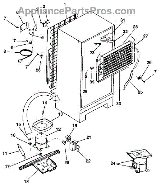 This is a compressor used in several types of home appliances. The compressor is designed to take cold gas in the appliance and place it under pressure so the gas raises in temperature. It is then moved through the refrigerator system to ensure the unit stays cold throughout the appliance. This part can become damaged or malfunction, which may cause the motor to stop running, make the motor noisier, or cause the motor to never stop running.If this happens, the compressor will need to be replaced. A basic set of tools will be needed. A pair of work gloves can also be useful. First, locate the compressor as it may be in various locations depending on the appliance model. Unplug the appliance before removing the compressor. Install the new compressor using the original bolts and nuts before turning the power back on and resuming normal use.This part is sold on an individual basis. The compressor is made to be used with refrigerators, ranges, stoves, ovens, air conditioners, and freezers created by Gibson, Frigidaire, Kelvinator, Montgomery Wards, Westinghouse, Tappan, JCPenney, Universal, and Kenmore. It is an authentic OEM replacement part directly sourced from the manufacturer.