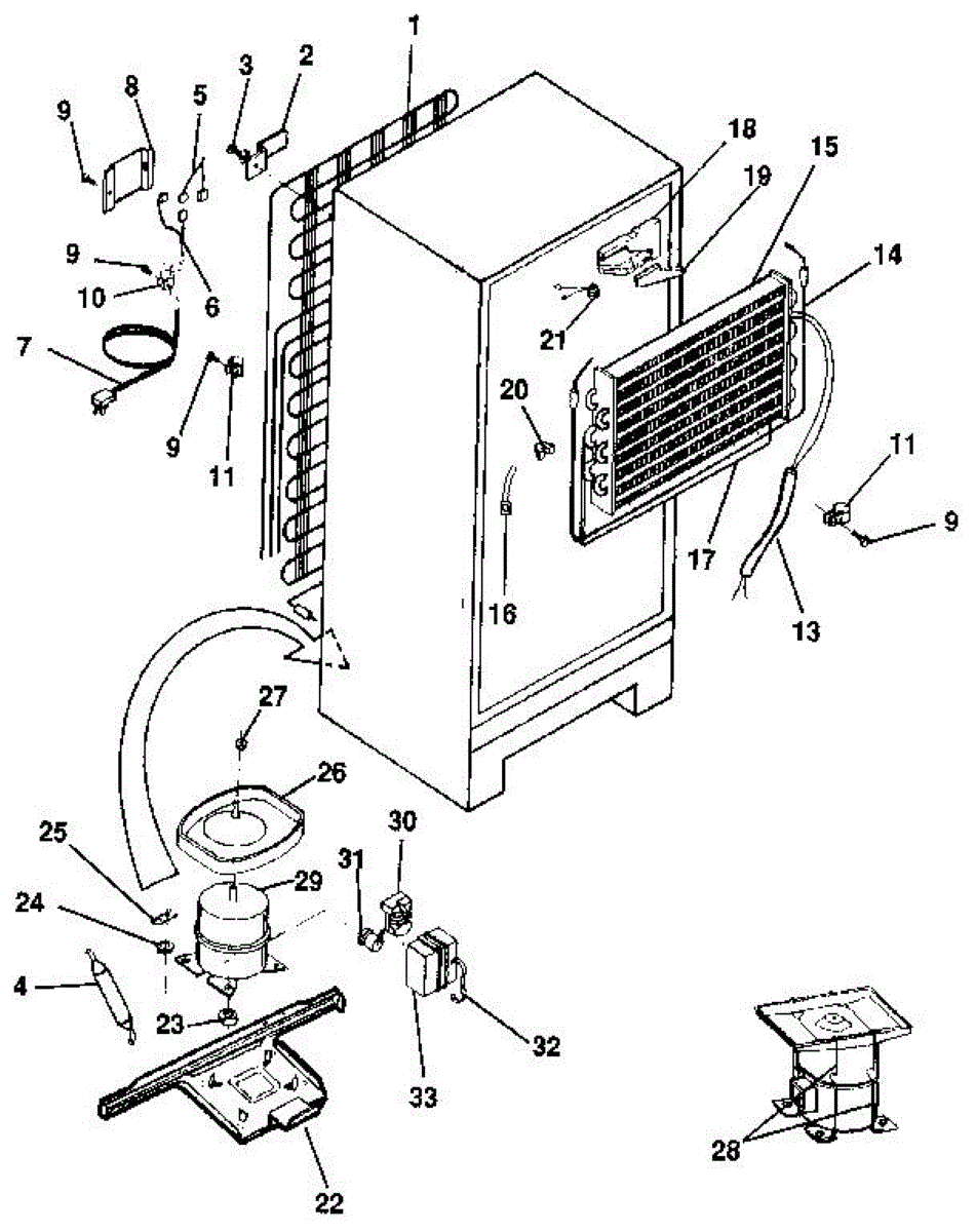 This is a compressor used in several types of home appliances. The compressor is designed to take cold gas in the appliance and place it under pressure so the gas raises in temperature. It is then moved through the refrigerator system to ensure the unit stays cold throughout the appliance. This part can become damaged or malfunction, which may cause the motor to stop running, make the motor noisier, or cause the motor to never stop running.If this happens, the compressor will need to be replaced. A basic set of tools will be needed. A pair of work gloves can also be useful. First, locate the compressor as it may be in various locations depending on the appliance model. Unplug the appliance before removing the compressor. Install the new compressor using the original bolts and nuts before turning the power back on and resuming normal use.This part is sold on an individual basis. The compressor is made to be used with refrigerators, ranges, stoves, ovens, air conditioners, and freezers created by Gibson, Frigidaire, Kelvinator, Montgomery Wards, Westinghouse, Tappan, JCPenney, Universal, and Kenmore. It is an authentic OEM replacement part directly sourced from the manufacturer.