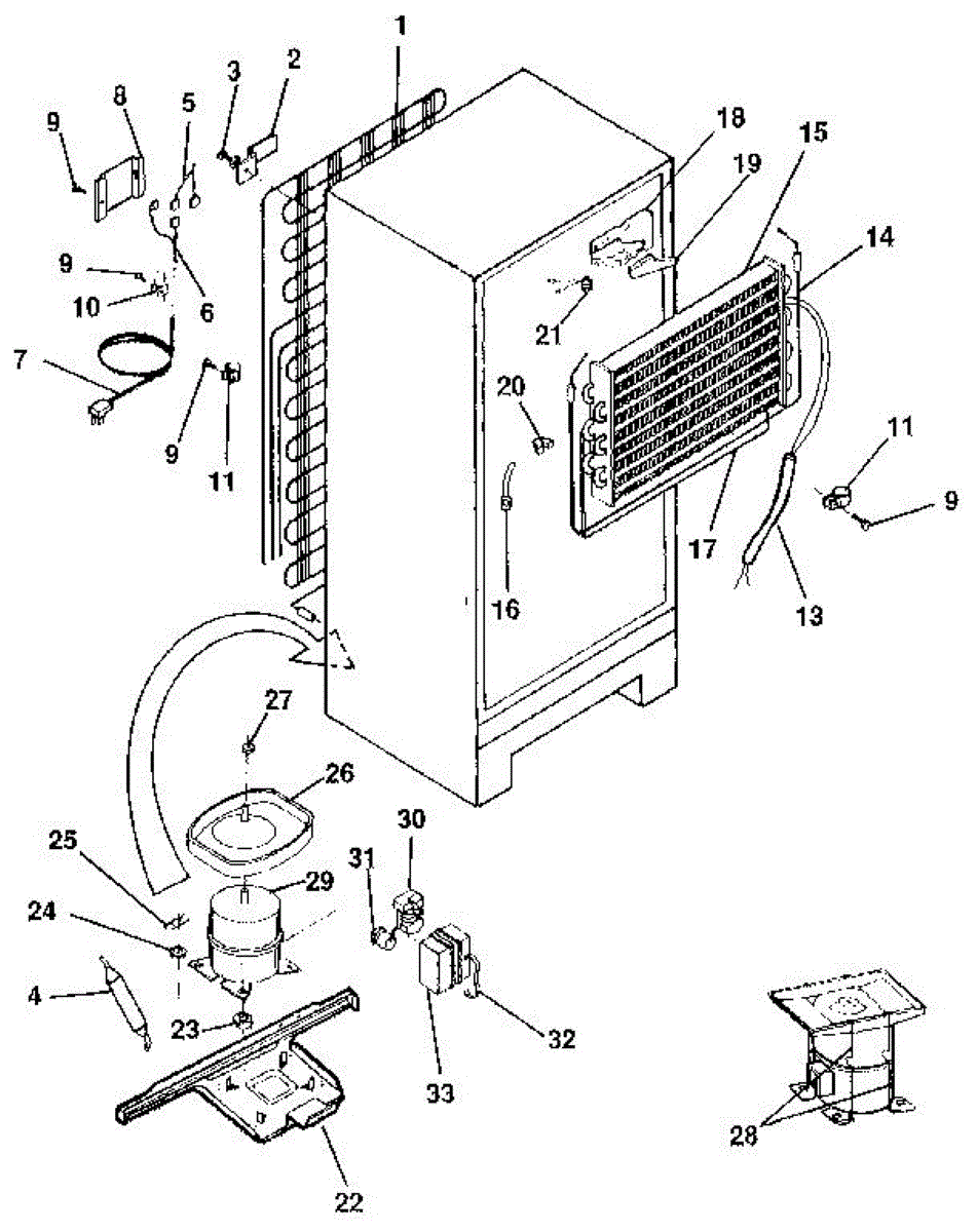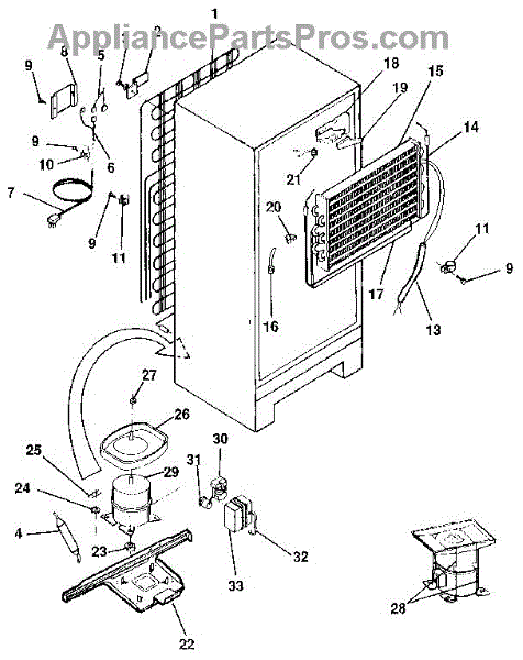 This is a compressor used in several types of home appliances. The compressor is designed to take cold gas in the appliance and place it under pressure so the gas raises in temperature. It is then moved through the refrigerator system to ensure the unit stays cold throughout the appliance. This part can become damaged or malfunction, which may cause the motor to stop running, make the motor noisier, or cause the motor to never stop running.If this happens, the compressor will need to be replaced. A basic set of tools will be needed. A pair of work gloves can also be useful. First, locate the compressor as it may be in various locations depending on the appliance model. Unplug the appliance before removing the compressor. Install the new compressor using the original bolts and nuts before turning the power back on and resuming normal use.This part is sold on an individual basis. The compressor is made to be used with refrigerators, ranges, stoves, ovens, air conditioners, and freezers created by Gibson, Frigidaire, Kelvinator, Montgomery Wards, Westinghouse, Tappan, JCPenney, Universal, and Kenmore. It is an authentic OEM replacement part directly sourced from the manufacturer.