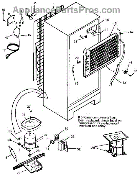 This is a compressor used in several types of home appliances. The compressor is designed to take cold gas in the appliance and place it under pressure so the gas raises in temperature. It is then moved through the refrigerator system to ensure the unit stays cold throughout the appliance. This part can become damaged or malfunction, which may cause the motor to stop running, make the motor noisier, or cause the motor to never stop running.If this happens, the compressor will need to be replaced. A basic set of tools will be needed. A pair of work gloves can also be useful. First, locate the compressor as it may be in various locations depending on the appliance model. Unplug the appliance before removing the compressor. Install the new compressor using the original bolts and nuts before turning the power back on and resuming normal use.This part is sold on an individual basis. The compressor is made to be used with refrigerators, ranges, stoves, ovens, air conditioners, and freezers created by Gibson, Frigidaire, Kelvinator, Montgomery Wards, Westinghouse, Tappan, JCPenney, Universal, and Kenmore. It is an authentic OEM replacement part directly sourced from the manufacturer.