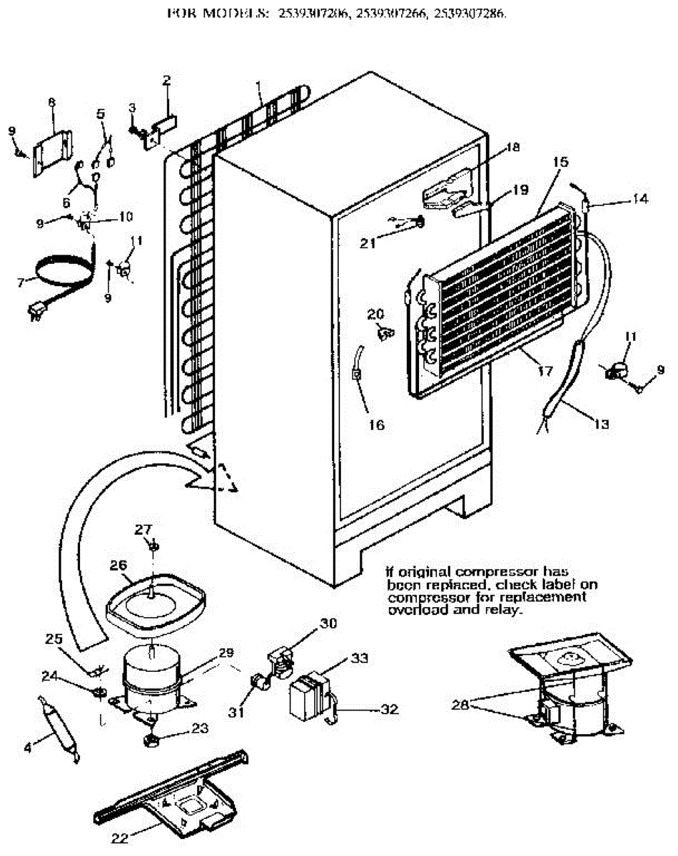 This is a compressor used in several types of home appliances. The compressor is designed to take cold gas in the appliance and place it under pressure so the gas raises in temperature. It is then moved through the refrigerator system to ensure the unit stays cold throughout the appliance. This part can become damaged or malfunction, which may cause the motor to stop running, make the motor noisier, or cause the motor to never stop running.If this happens, the compressor will need to be replaced. A basic set of tools will be needed. A pair of work gloves can also be useful. First, locate the compressor as it may be in various locations depending on the appliance model. Unplug the appliance before removing the compressor. Install the new compressor using the original bolts and nuts before turning the power back on and resuming normal use.This part is sold on an individual basis. The compressor is made to be used with refrigerators, ranges, stoves, ovens, air conditioners, and freezers created by Gibson, Frigidaire, Kelvinator, Montgomery Wards, Westinghouse, Tappan, JCPenney, Universal, and Kenmore. It is an authentic OEM replacement part directly sourced from the manufacturer.