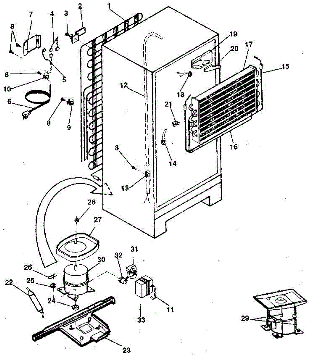 This is a compressor used in several types of home appliances. The compressor is designed to take cold gas in the appliance and place it under pressure so the gas raises in temperature. It is then moved through the refrigerator system to ensure the unit stays cold throughout the appliance. This part can become damaged or malfunction, which may cause the motor to stop running, make the motor noisier, or cause the motor to never stop running.If this happens, the compressor will need to be replaced. A basic set of tools will be needed. A pair of work gloves can also be useful. First, locate the compressor as it may be in various locations depending on the appliance model. Unplug the appliance before removing the compressor. Install the new compressor using the original bolts and nuts before turning the power back on and resuming normal use.This part is sold on an individual basis. The compressor is made to be used with refrigerators, ranges, stoves, ovens, air conditioners, and freezers created by Gibson, Frigidaire, Kelvinator, Montgomery Wards, Westinghouse, Tappan, JCPenney, Universal, and Kenmore. It is an authentic OEM replacement part directly sourced from the manufacturer.