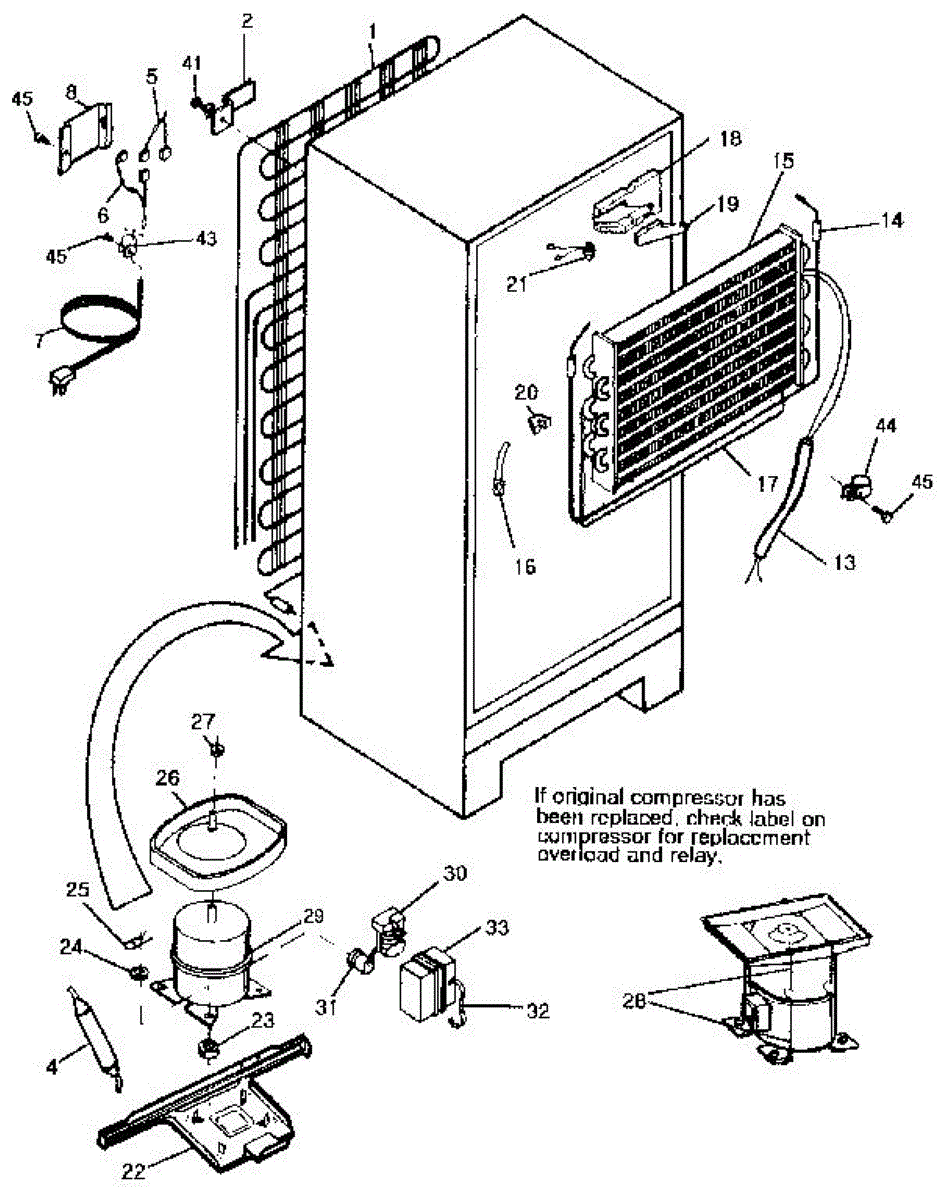 This is a compressor used in several types of home appliances. The compressor is designed to take cold gas in the appliance and place it under pressure so the gas raises in temperature. It is then moved through the refrigerator system to ensure the unit stays cold throughout the appliance. This part can become damaged or malfunction, which may cause the motor to stop running, make the motor noisier, or cause the motor to never stop running.If this happens, the compressor will need to be replaced. A basic set of tools will be needed. A pair of work gloves can also be useful. First, locate the compressor as it may be in various locations depending on the appliance model. Unplug the appliance before removing the compressor. Install the new compressor using the original bolts and nuts before turning the power back on and resuming normal use.This part is sold on an individual basis. The compressor is made to be used with refrigerators, ranges, stoves, ovens, air conditioners, and freezers created by Gibson, Frigidaire, Kelvinator, Montgomery Wards, Westinghouse, Tappan, JCPenney, Universal, and Kenmore. It is an authentic OEM replacement part directly sourced from the manufacturer.