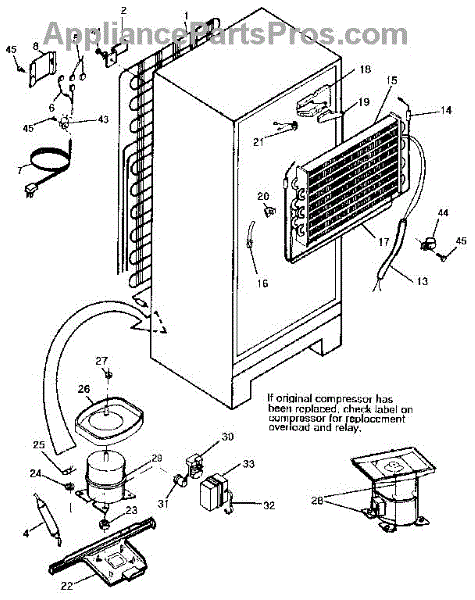 This is a compressor used in several types of home appliances. The compressor is designed to take cold gas in the appliance and place it under pressure so the gas raises in temperature. It is then moved through the refrigerator system to ensure the unit stays cold throughout the appliance. This part can become damaged or malfunction, which may cause the motor to stop running, make the motor noisier, or cause the motor to never stop running.If this happens, the compressor will need to be replaced. A basic set of tools will be needed. A pair of work gloves can also be useful. First, locate the compressor as it may be in various locations depending on the appliance model. Unplug the appliance before removing the compressor. Install the new compressor using the original bolts and nuts before turning the power back on and resuming normal use.This part is sold on an individual basis. The compressor is made to be used with refrigerators, ranges, stoves, ovens, air conditioners, and freezers created by Gibson, Frigidaire, Kelvinator, Montgomery Wards, Westinghouse, Tappan, JCPenney, Universal, and Kenmore. It is an authentic OEM replacement part directly sourced from the manufacturer.