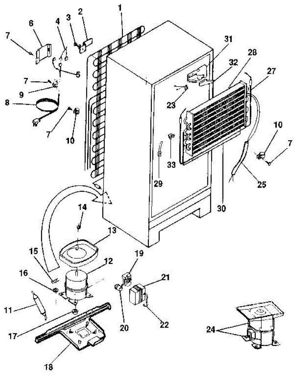 This is a compressor used in several types of home appliances. The compressor is designed to take cold gas in the appliance and place it under pressure so the gas raises in temperature. It is then moved through the refrigerator system to ensure the unit stays cold throughout the appliance. This part can become damaged or malfunction, which may cause the motor to stop running, make the motor noisier, or cause the motor to never stop running.If this happens, the compressor will need to be replaced. A basic set of tools will be needed. A pair of work gloves can also be useful. First, locate the compressor as it may be in various locations depending on the appliance model. Unplug the appliance before removing the compressor. Install the new compressor using the original bolts and nuts before turning the power back on and resuming normal use.This part is sold on an individual basis. The compressor is made to be used with refrigerators, ranges, stoves, ovens, air conditioners, and freezers created by Gibson, Frigidaire, Kelvinator, Montgomery Wards, Westinghouse, Tappan, JCPenney, Universal, and Kenmore. It is an authentic OEM replacement part directly sourced from the manufacturer.
