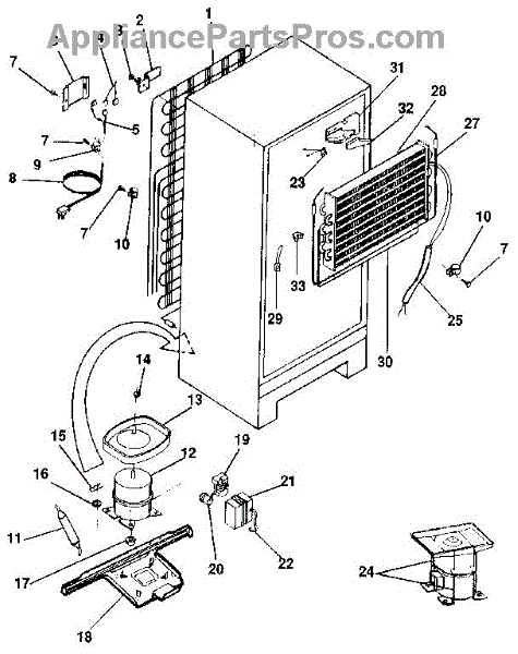 This is a compressor used in several types of home appliances. The compressor is designed to take cold gas in the appliance and place it under pressure so the gas raises in temperature. It is then moved through the refrigerator system to ensure the unit stays cold throughout the appliance. This part can become damaged or malfunction, which may cause the motor to stop running, make the motor noisier, or cause the motor to never stop running.If this happens, the compressor will need to be replaced. A basic set of tools will be needed. A pair of work gloves can also be useful. First, locate the compressor as it may be in various locations depending on the appliance model. Unplug the appliance before removing the compressor. Install the new compressor using the original bolts and nuts before turning the power back on and resuming normal use.This part is sold on an individual basis. The compressor is made to be used with refrigerators, ranges, stoves, ovens, air conditioners, and freezers created by Gibson, Frigidaire, Kelvinator, Montgomery Wards, Westinghouse, Tappan, JCPenney, Universal, and Kenmore. It is an authentic OEM replacement part directly sourced from the manufacturer.