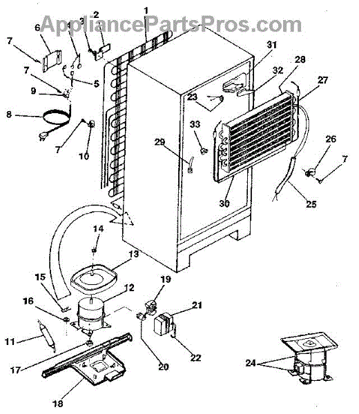 This is a compressor used in several types of home appliances. The compressor is designed to take cold gas in the appliance and place it under pressure so the gas raises in temperature. It is then moved through the refrigerator system to ensure the unit stays cold throughout the appliance. This part can become damaged or malfunction, which may cause the motor to stop running, make the motor noisier, or cause the motor to never stop running.If this happens, the compressor will need to be replaced. A basic set of tools will be needed. A pair of work gloves can also be useful. First, locate the compressor as it may be in various locations depending on the appliance model. Unplug the appliance before removing the compressor. Install the new compressor using the original bolts and nuts before turning the power back on and resuming normal use.This part is sold on an individual basis. The compressor is made to be used with refrigerators, ranges, stoves, ovens, air conditioners, and freezers created by Gibson, Frigidaire, Kelvinator, Montgomery Wards, Westinghouse, Tappan, JCPenney, Universal, and Kenmore. It is an authentic OEM replacement part directly sourced from the manufacturer.