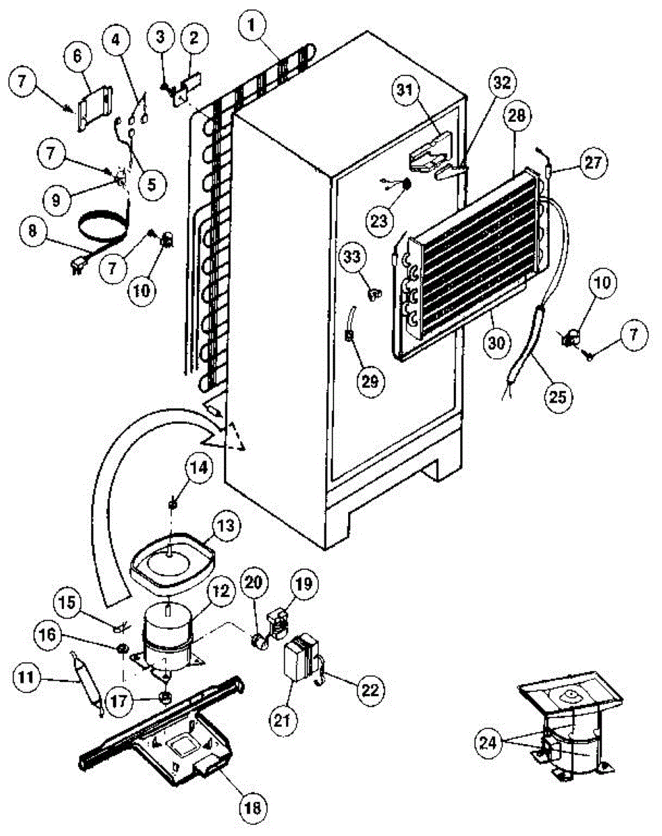 This is a compressor used in several types of home appliances. The compressor is designed to take cold gas in the appliance and place it under pressure so the gas raises in temperature. It is then moved through the refrigerator system to ensure the unit stays cold throughout the appliance. This part can become damaged or malfunction, which may cause the motor to stop running, make the motor noisier, or cause the motor to never stop running.If this happens, the compressor will need to be replaced. A basic set of tools will be needed. A pair of work gloves can also be useful. First, locate the compressor as it may be in various locations depending on the appliance model. Unplug the appliance before removing the compressor. Install the new compressor using the original bolts and nuts before turning the power back on and resuming normal use.This part is sold on an individual basis. The compressor is made to be used with refrigerators, ranges, stoves, ovens, air conditioners, and freezers created by Gibson, Frigidaire, Kelvinator, Montgomery Wards, Westinghouse, Tappan, JCPenney, Universal, and Kenmore. It is an authentic OEM replacement part directly sourced from the manufacturer.