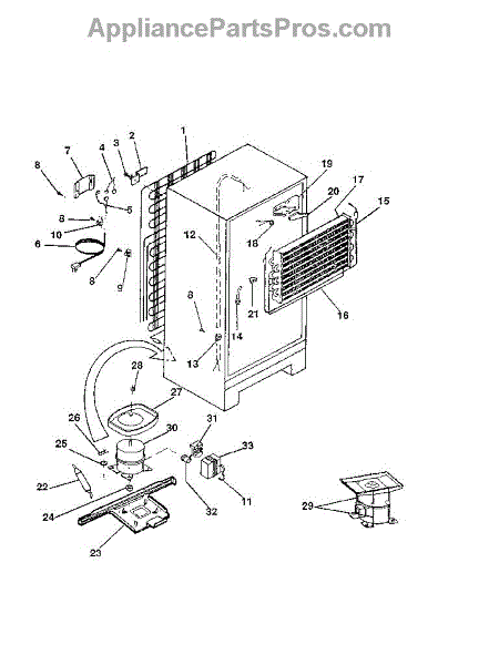 This is a compressor used in several types of home appliances. The compressor is designed to take cold gas in the appliance and place it under pressure so the gas raises in temperature. It is then moved through the refrigerator system to ensure the unit stays cold throughout the appliance. This part can become damaged or malfunction, which may cause the motor to stop running, make the motor noisier, or cause the motor to never stop running.If this happens, the compressor will need to be replaced. A basic set of tools will be needed. A pair of work gloves can also be useful. First, locate the compressor as it may be in various locations depending on the appliance model. Unplug the appliance before removing the compressor. Install the new compressor using the original bolts and nuts before turning the power back on and resuming normal use.This part is sold on an individual basis. The compressor is made to be used with refrigerators, ranges, stoves, ovens, air conditioners, and freezers created by Gibson, Frigidaire, Kelvinator, Montgomery Wards, Westinghouse, Tappan, JCPenney, Universal, and Kenmore. It is an authentic OEM replacement part directly sourced from the manufacturer.