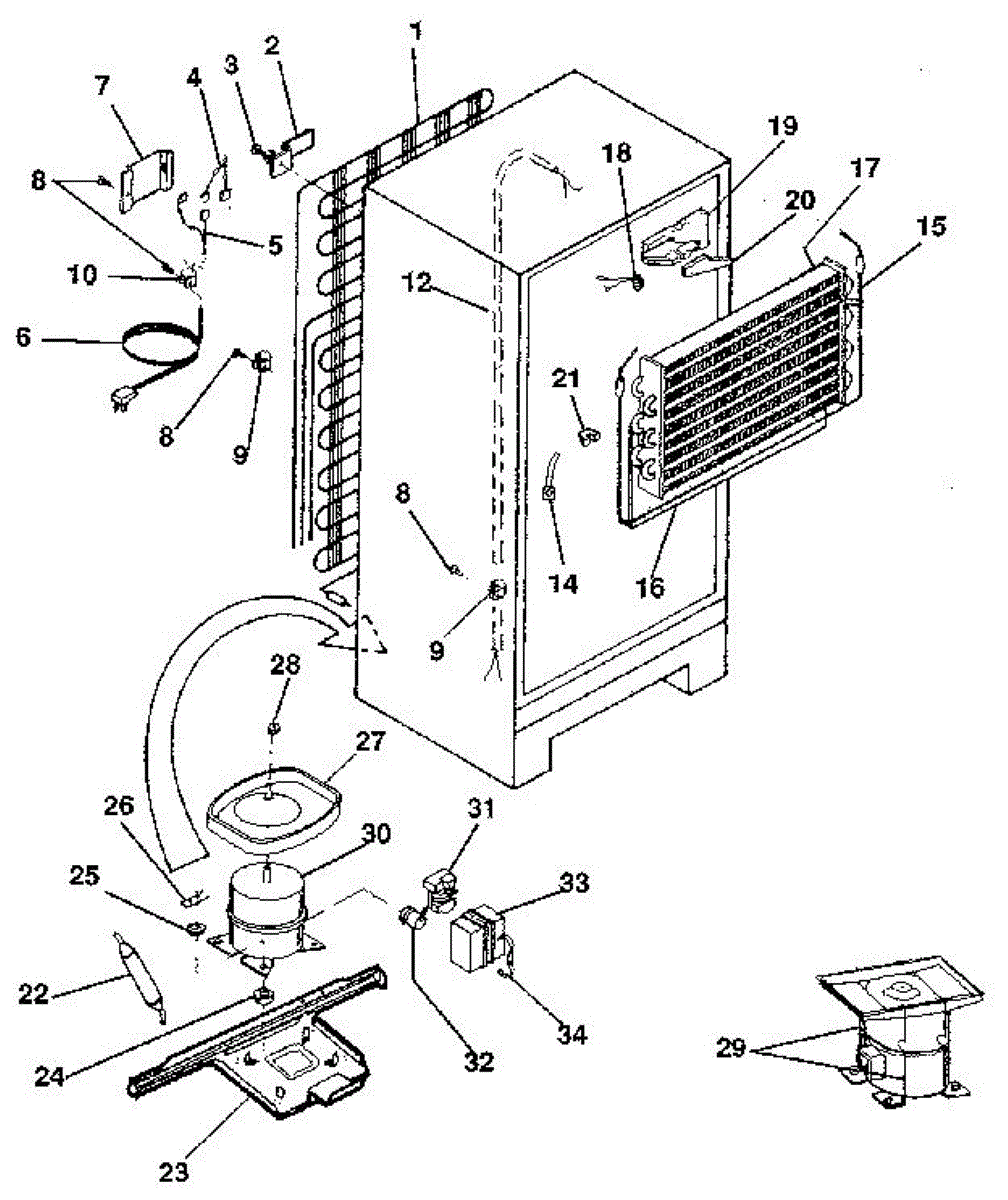 This is a compressor used in several types of home appliances. The compressor is designed to take cold gas in the appliance and place it under pressure so the gas raises in temperature. It is then moved through the refrigerator system to ensure the unit stays cold throughout the appliance. This part can become damaged or malfunction, which may cause the motor to stop running, make the motor noisier, or cause the motor to never stop running.If this happens, the compressor will need to be replaced. A basic set of tools will be needed. A pair of work gloves can also be useful. First, locate the compressor as it may be in various locations depending on the appliance model. Unplug the appliance before removing the compressor. Install the new compressor using the original bolts and nuts before turning the power back on and resuming normal use.This part is sold on an individual basis. The compressor is made to be used with refrigerators, ranges, stoves, ovens, air conditioners, and freezers created by Gibson, Frigidaire, Kelvinator, Montgomery Wards, Westinghouse, Tappan, JCPenney, Universal, and Kenmore. It is an authentic OEM replacement part directly sourced from the manufacturer.