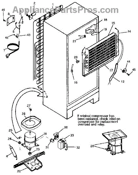 This is a compressor used in several types of home appliances. The compressor is designed to take cold gas in the appliance and place it under pressure so the gas raises in temperature. It is then moved through the refrigerator system to ensure the unit stays cold throughout the appliance. This part can become damaged or malfunction, which may cause the motor to stop running, make the motor noisier, or cause the motor to never stop running.If this happens, the compressor will need to be replaced. A basic set of tools will be needed. A pair of work gloves can also be useful. First, locate the compressor as it may be in various locations depending on the appliance model. Unplug the appliance before removing the compressor. Install the new compressor using the original bolts and nuts before turning the power back on and resuming normal use.This part is sold on an individual basis. The compressor is made to be used with refrigerators, ranges, stoves, ovens, air conditioners, and freezers created by Gibson, Frigidaire, Kelvinator, Montgomery Wards, Westinghouse, Tappan, JCPenney, Universal, and Kenmore. It is an authentic OEM replacement part directly sourced from the manufacturer.