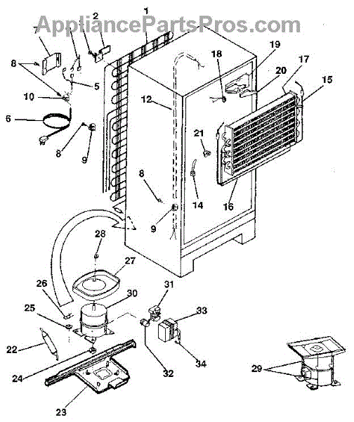 This is a compressor used in several types of home appliances. The compressor is designed to take cold gas in the appliance and place it under pressure so the gas raises in temperature. It is then moved through the refrigerator system to ensure the unit stays cold throughout the appliance. This part can become damaged or malfunction, which may cause the motor to stop running, make the motor noisier, or cause the motor to never stop running.If this happens, the compressor will need to be replaced. A basic set of tools will be needed. A pair of work gloves can also be useful. First, locate the compressor as it may be in various locations depending on the appliance model. Unplug the appliance before removing the compressor. Install the new compressor using the original bolts and nuts before turning the power back on and resuming normal use.This part is sold on an individual basis. The compressor is made to be used with refrigerators, ranges, stoves, ovens, air conditioners, and freezers created by Gibson, Frigidaire, Kelvinator, Montgomery Wards, Westinghouse, Tappan, JCPenney, Universal, and Kenmore. It is an authentic OEM replacement part directly sourced from the manufacturer.