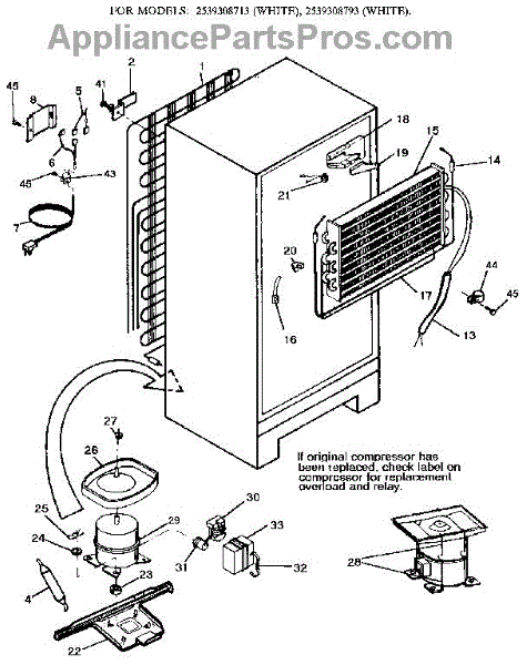 This is a compressor used in several types of home appliances. The compressor is designed to take cold gas in the appliance and place it under pressure so the gas raises in temperature. It is then moved through the refrigerator system to ensure the unit stays cold throughout the appliance. This part can become damaged or malfunction, which may cause the motor to stop running, make the motor noisier, or cause the motor to never stop running.If this happens, the compressor will need to be replaced. A basic set of tools will be needed. A pair of work gloves can also be useful. First, locate the compressor as it may be in various locations depending on the appliance model. Unplug the appliance before removing the compressor. Install the new compressor using the original bolts and nuts before turning the power back on and resuming normal use.This part is sold on an individual basis. The compressor is made to be used with refrigerators, ranges, stoves, ovens, air conditioners, and freezers created by Gibson, Frigidaire, Kelvinator, Montgomery Wards, Westinghouse, Tappan, JCPenney, Universal, and Kenmore. It is an authentic OEM replacement part directly sourced from the manufacturer.