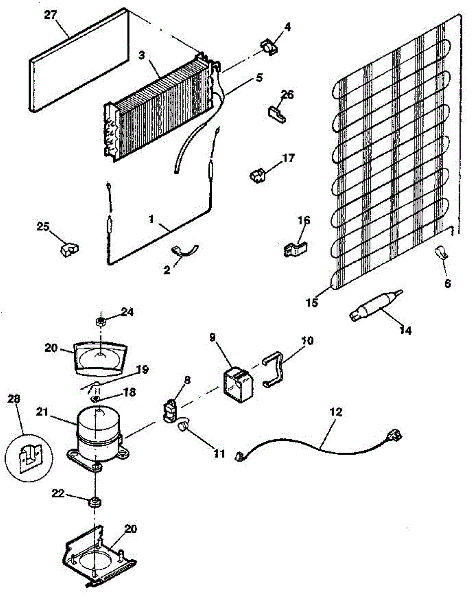 This is a compressor used in several types of home appliances. The compressor is designed to take cold gas in the appliance and place it under pressure so the gas raises in temperature. It is then moved through the refrigerator system to ensure the unit stays cold throughout the appliance. This part can become damaged or malfunction, which may cause the motor to stop running, make the motor noisier, or cause the motor to never stop running.If this happens, the compressor will need to be replaced. A basic set of tools will be needed. A pair of work gloves can also be useful. First, locate the compressor as it may be in various locations depending on the appliance model. Unplug the appliance before removing the compressor. Install the new compressor using the original bolts and nuts before turning the power back on and resuming normal use.This part is sold on an individual basis. The compressor is made to be used with refrigerators, ranges, stoves, ovens, air conditioners, and freezers created by Gibson, Frigidaire, Kelvinator, Montgomery Wards, Westinghouse, Tappan, JCPenney, Universal, and Kenmore. It is an authentic OEM replacement part directly sourced from the manufacturer.
