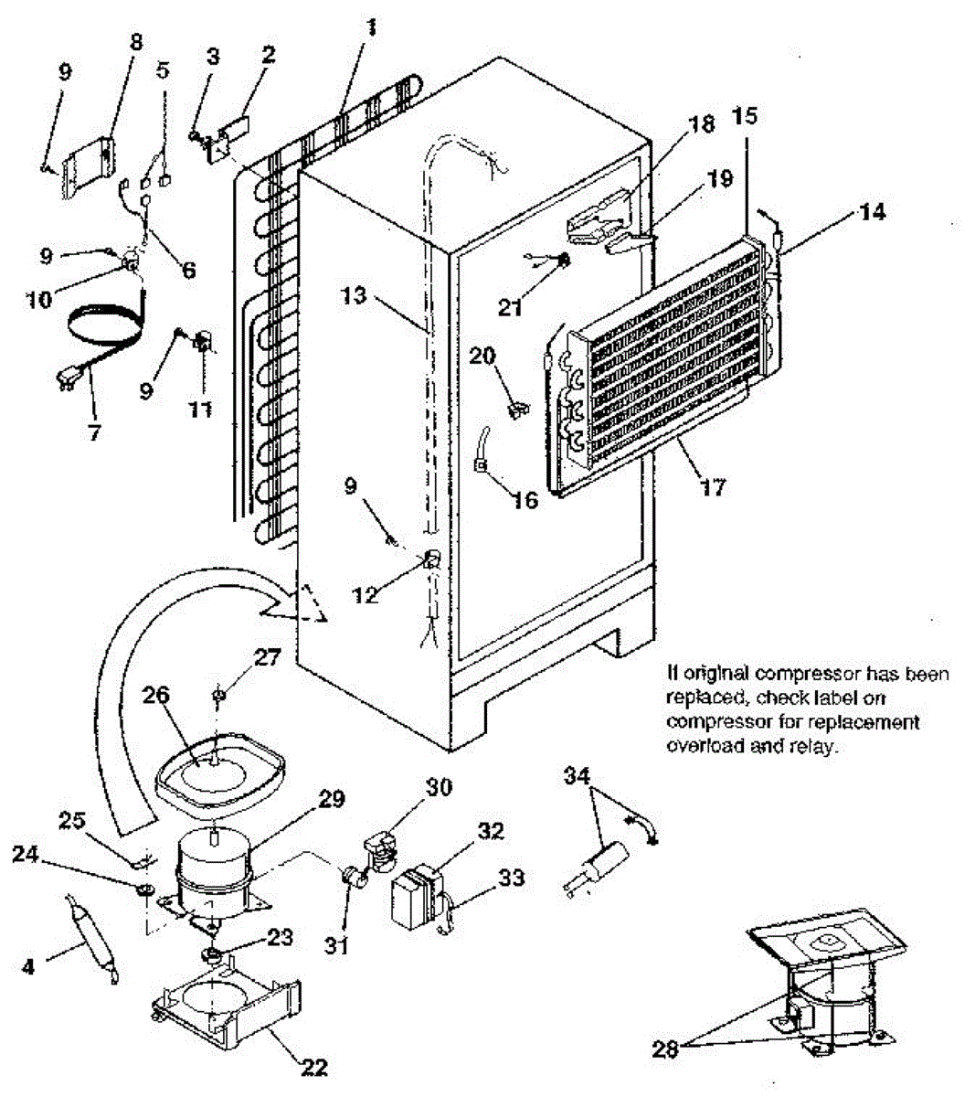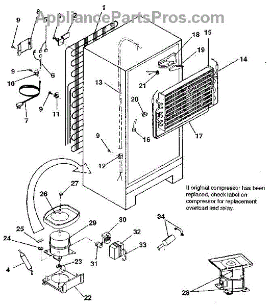 This is a compressor used in several types of home appliances. The compressor is designed to take cold gas in the appliance and place it under pressure so the gas raises in temperature. It is then moved through the refrigerator system to ensure the unit stays cold throughout the appliance. This part can become damaged or malfunction, which may cause the motor to stop running, make the motor noisier, or cause the motor to never stop running.If this happens, the compressor will need to be replaced. A basic set of tools will be needed. A pair of work gloves can also be useful. First, locate the compressor as it may be in various locations depending on the appliance model. Unplug the appliance before removing the compressor. Install the new compressor using the original bolts and nuts before turning the power back on and resuming normal use.This part is sold on an individual basis. The compressor is made to be used with refrigerators, ranges, stoves, ovens, air conditioners, and freezers created by Gibson, Frigidaire, Kelvinator, Montgomery Wards, Westinghouse, Tappan, JCPenney, Universal, and Kenmore. It is an authentic OEM replacement part directly sourced from the manufacturer.