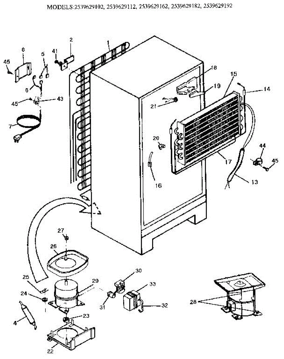 This is a compressor used in several types of home appliances. The compressor is designed to take cold gas in the appliance and place it under pressure so the gas raises in temperature. It is then moved through the refrigerator system to ensure the unit stays cold throughout the appliance. This part can become damaged or malfunction, which may cause the motor to stop running, make the motor noisier, or cause the motor to never stop running.If this happens, the compressor will need to be replaced. A basic set of tools will be needed. A pair of work gloves can also be useful. First, locate the compressor as it may be in various locations depending on the appliance model. Unplug the appliance before removing the compressor. Install the new compressor using the original bolts and nuts before turning the power back on and resuming normal use.This part is sold on an individual basis. The compressor is made to be used with refrigerators, ranges, stoves, ovens, air conditioners, and freezers created by Gibson, Frigidaire, Kelvinator, Montgomery Wards, Westinghouse, Tappan, JCPenney, Universal, and Kenmore. It is an authentic OEM replacement part directly sourced from the manufacturer.