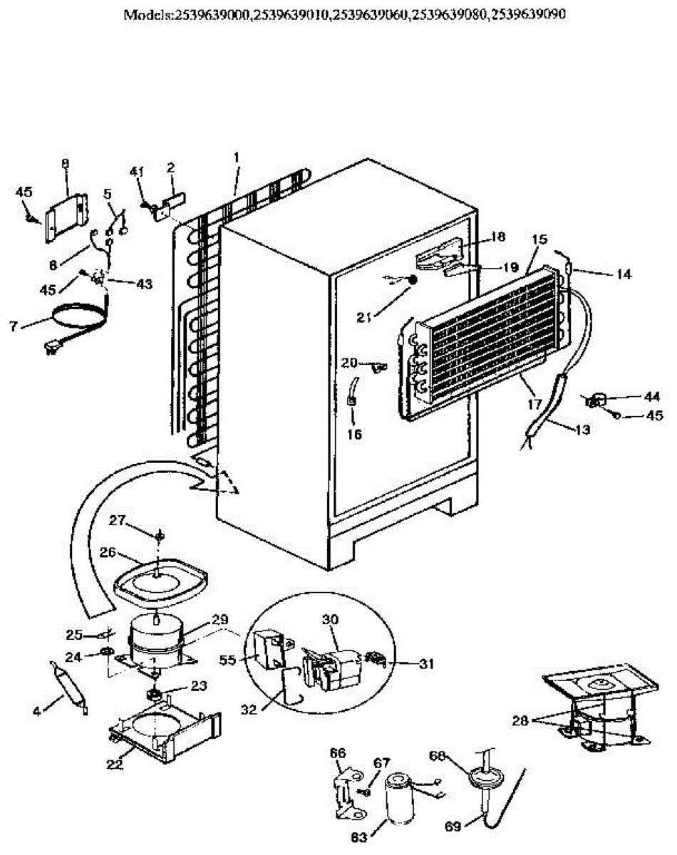 Parts for Kenmore 253.9639080 (2539639080, 253 9639080): Unit Parts