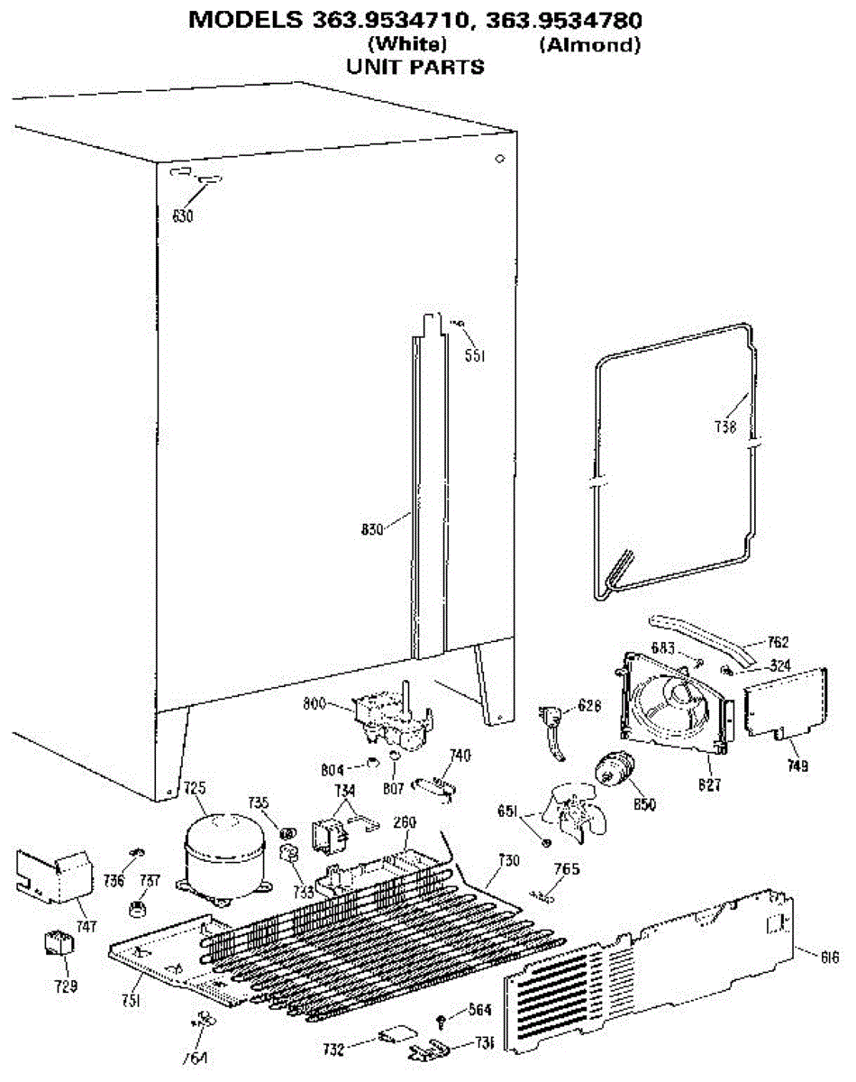 Parts for Kenmore 363.9534780 (3639534780, 363 9534780): Unit Parts