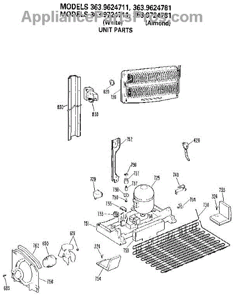 Parts for Kenmore 363.9624711 (3639624711, 363 9624711): Unit Parts