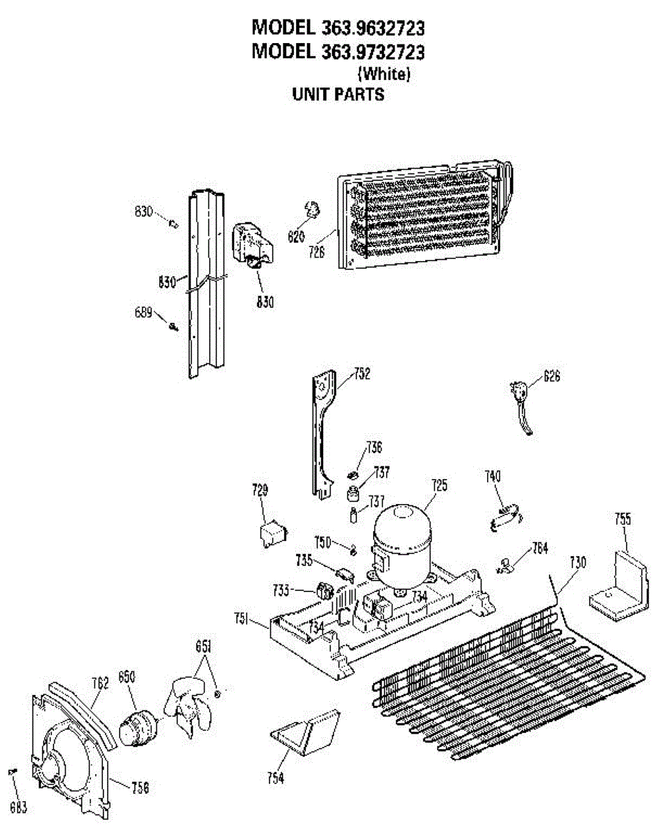 Parts for Kenmore 363.9632723 (3639632723, 363 9632723): Unit Parts