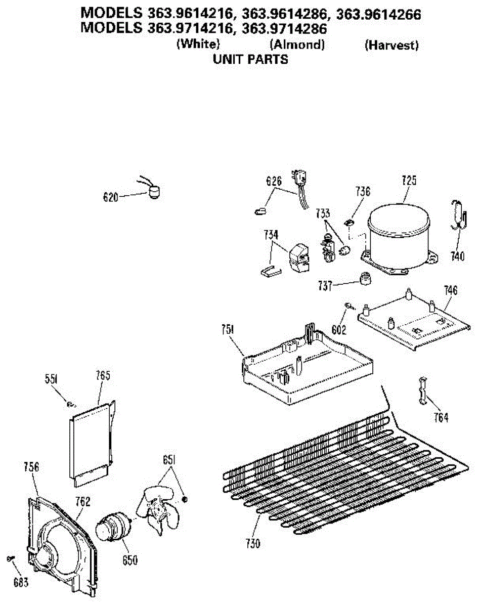 Parts for Kenmore 363.9714216 (3639714216, 363 9714216): Unit Parts