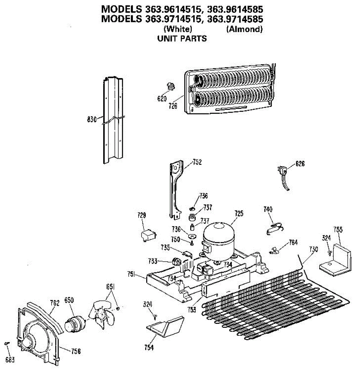 Parts for Kenmore 363.9714585 (3639714585, 363 9714585): Unit Parts