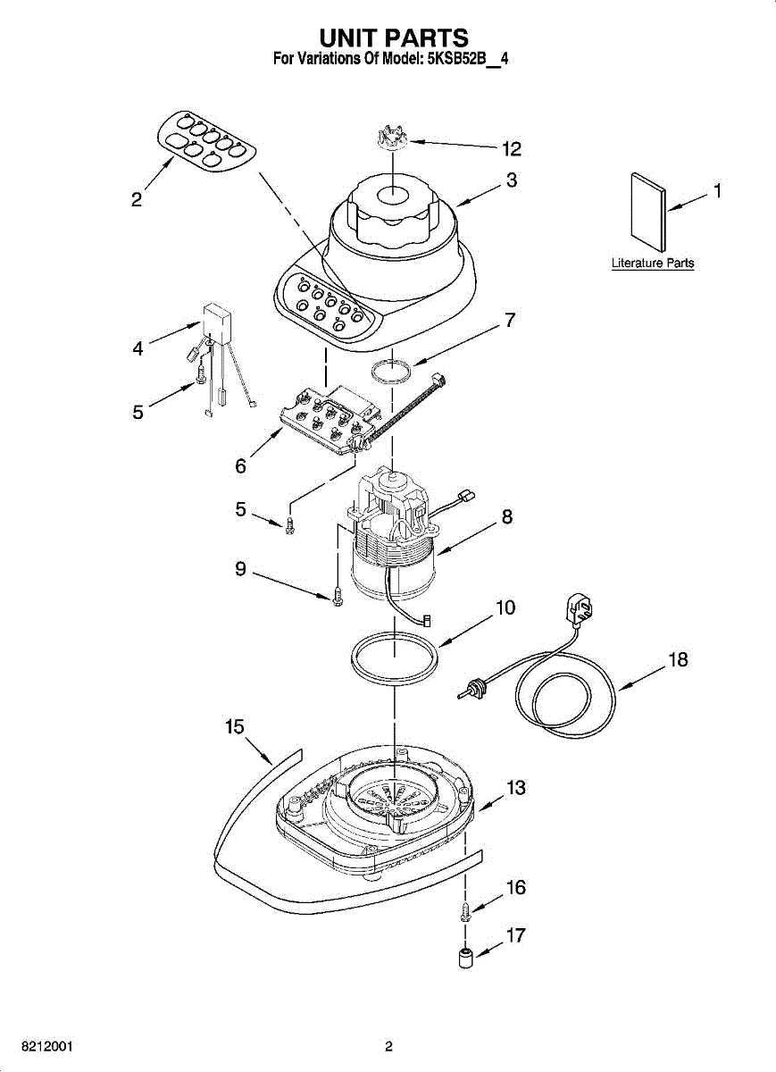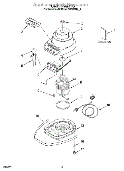 Parts for Kitchenaid 5KSB52BOB4: 01 - Unit Parts