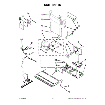 The Drip Pan is an OEM part for Whirlpool refrigerators. Located beneath the refrigerator, it collects and holds water that drips from the defrost system, preventing it from leaking onto the floor.